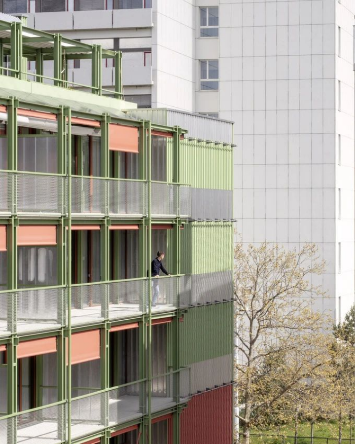因此,这些柱子也成为房屋内部组织的起点:实际的城市发展由现有建筑定义,但是在该项目中沿着“内部街道”,一个房屋内的城市正在成形。这个内部系统不仅提供通往楼梯间、公共房间和洗衣房的通道,还为各个世代和不同类型的生活方式提供了多样的公寓类型(1.5到7.5个房间的公寓)。