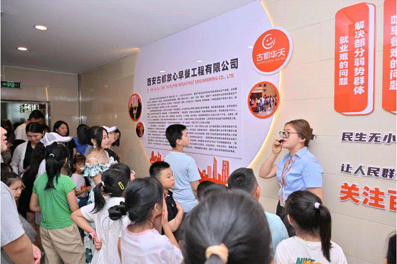 在参观通道,孩子们目睹了自动化生产线的高效运作,了解了早餐成品包装制作的严谨流程,品尝了自己亲手制作的豆沙包,也认识到了食品安全在日常生活中的重要性。
