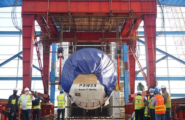 哈电国际承建的巴基斯坦滨佳胜三期项目1号燃机成功就位