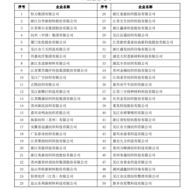 附件:2023中国长丝织造行业经济效益50强入围名单