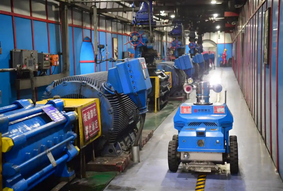 某智慧矿山井下的中央水泵房智能巡检机器人在巡检。新华社记者 邵瑞 摄