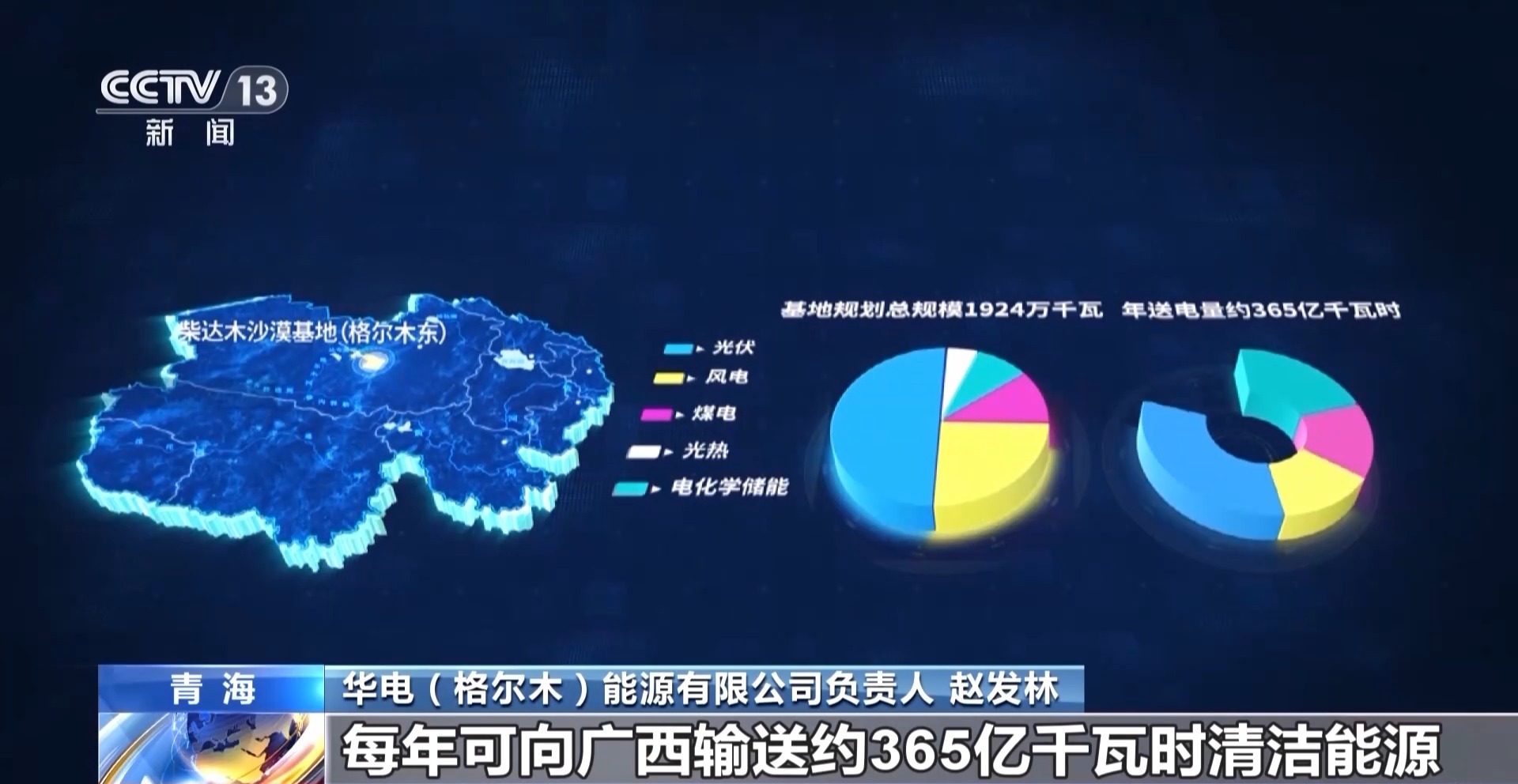 华电(格尔木)能源有限公司负责人赵发林:项目建成投运后,每年可向广西输送约365亿千瓦时清洁能源,相当于广西2024年全社会用电量的14%,将有效缓解广西电力缺口。