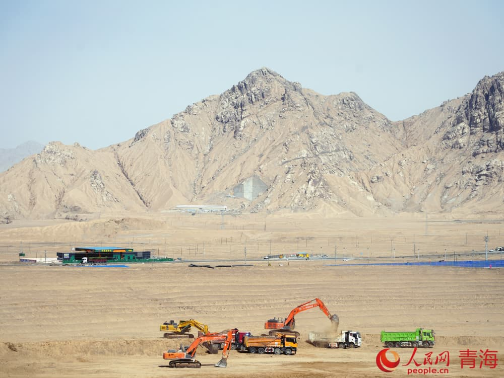 三峡格尔木南山口240万千瓦抽水蓄能电站下库施工。人民网况玉摄
