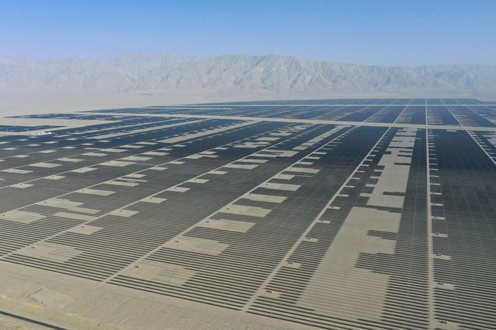 这是6月26日拍摄的中国绿发新疆中绿电若羌400万千瓦光伏项目(无人机照片)。新华社记者丁磊摄