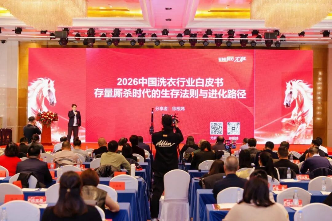 在“淬炼篇”中,行业大咖分享前沿洞见:巴斯夫(中国)的李清带来《洞见:巴斯夫助力中国布草洗涤发展》,介绍护理化学品部门本土化布局与湛江新生产基地建设,分享强乳化低泡的LutensolNL556、绿色螯合剂等核心产品优势,解读国际洗涤剂技术趋势与国内最新动态;江苏康乃馨纺织科技有限公司王丹丹以《解构织物:原材料、工艺与质量标准》为题,拆解纺织品核心参数与质量评价体系,明确酒店纺织品相关国标要求,为解决布草洗涤纠纷提供参考;河北圣洛依清洁服务有限公司李敏聚焦“效率为核节能为基”,强调隧道式洗涤龙等设备的能效优势,分享洗涤厂内部管理与智能设备应用经验,为行业降本增效提供启示;淮安鸿润医纺的朱跃南带来《508新标下,淮安鸿润的创新发展之路》分享,介绍在508新标实施背景下,企业精准把握行业变革方向,创新投用国内首台医用床垫清洗烘干消毒流水线,成功达成“单独洗涤、消毒、烘干”的新标核心要求,以硬核技术创新交出企业发展的亮眼答卷;上海伊丽莎电子科技有限公司叶云才带来《布草烫平如何实现高速压榨压干压平节能新技术》,揭秘布草洗涤品质提升的关键密码,其技术分享带来不小行业震撼;北京尤萨洗涤设备有限公司徐根娣发布《2026中国洗衣行业白皮书——存量厮杀时代的生存法则与进化路径》,直击行业困顿与焦虑,为企业在存量竞争中寻找生存发展新思路。