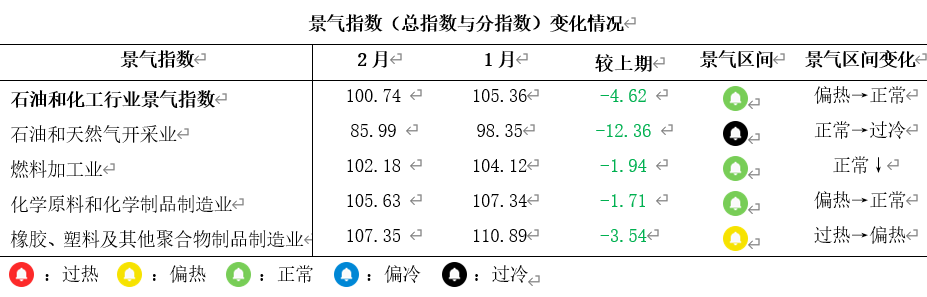 春节消费市场上,家电、3C数码等销售火热,对上游橡胶、塑料及其他聚合物制品制造业相关石化原料的需求形成阶段性拉动,提升了行业对节后行情的预期。但随着假期结束,补货意愿减弱,终端经销商普遍进入去库存周期,导致石化企业的新订单跟进出现边际放缓。总体来看,出行热、生产冷、消费旺、补库缓是2月的基本特征,可以清晰地看出石化行业分化、整体景气度回调的内在逻辑。