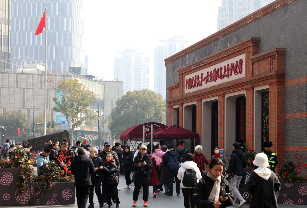 2024年2月10日,位于上海的中共一大纪念馆举办贺新春活动,纪念馆前游人众多。新华社发