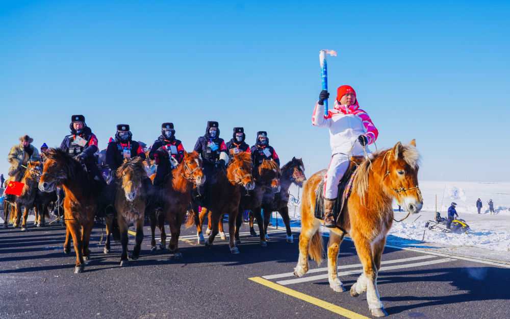 2024年2月3日,第十四届全国冬季运动会火炬传递活动在内蒙古自治区呼伦贝尔市进行,这是“十四冬”开幕前的最后一次火炬传递。新华社发(西日呼摄)