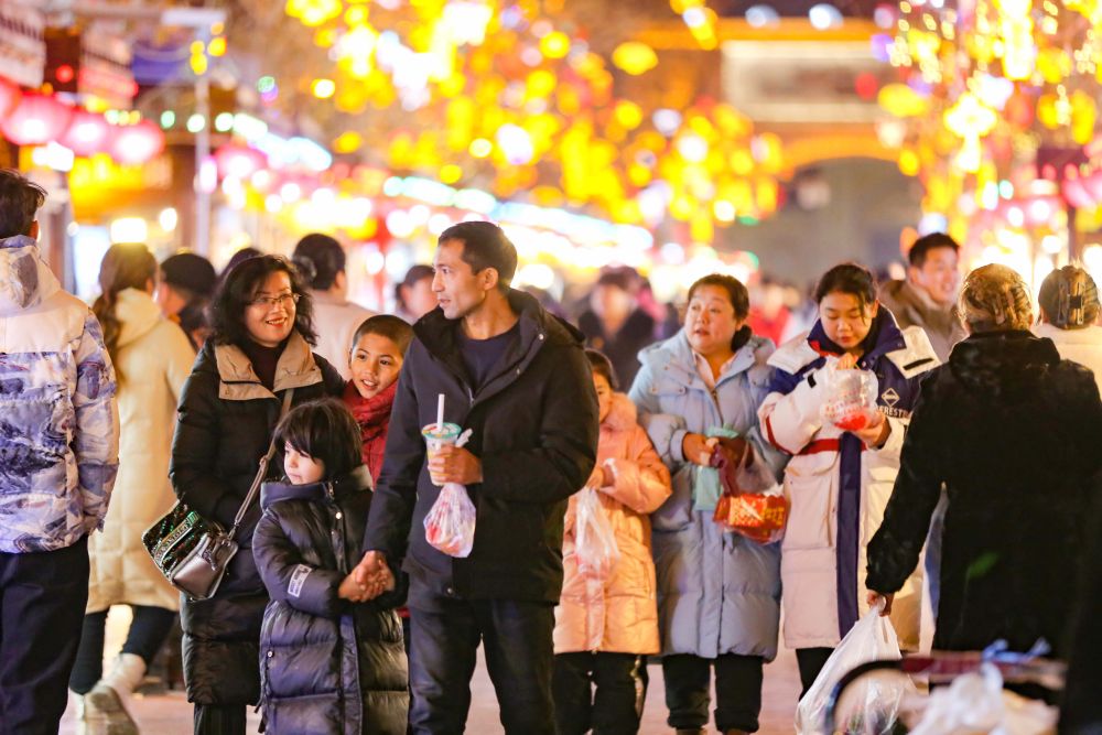 在新疆喀什古城,彩灯高挂、福字盈门,民族风情与春节装饰相映成趣。来自甘肃的游客张格兴奋地说:“走进其中,买买逛逛,才能真正体会到‘新疆是个好地方’的人文之美。”