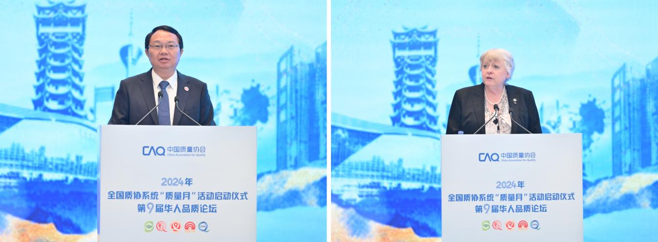 五粮液集团(股份)公司党委书记、董事长曾从钦,国际质量科学院(IAQ)原主席、美国质量学会(ASQ)董事会原主席伊丽莎白·莉兹·凯姆女士,分别在会上作了题为“共铸质量基石共谱和美新篇”和“面向未来的质量专业人员”的主旨演讲。