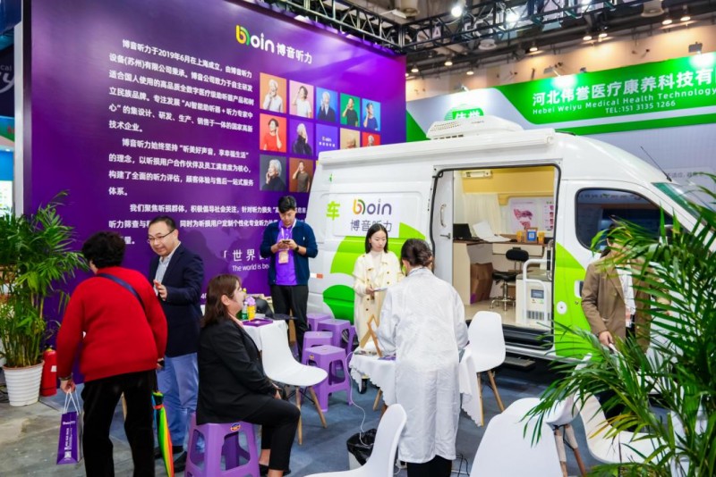 博音听力现场带来最新发布的秦风系列超大功率助听器、汉韵系列大功率耳背式助听器、唐潮系列定制式助听器以及一站式听力服务,致力于引领智能听力新未来。值得注意的是流动验配车的首次亮相,是吸引了无数眼球,成为展会上一道亮丽的风景线。