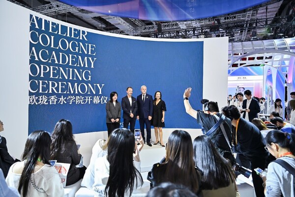 在第七届中国国际进口博览会(CIIE)的欧莱雅主展台"美之道"系列活动中,欧莱雅北亚总裁及中国首席执行官博万尚,欧莱雅北亚及中国公共事务总裁兰珍珍,欧莱雅集团国际分销事业部北亚及中国总经理李赟以及法国调香大师JérômeEpinette共同为全球首家法国欧珑香水学院拉开序幕。