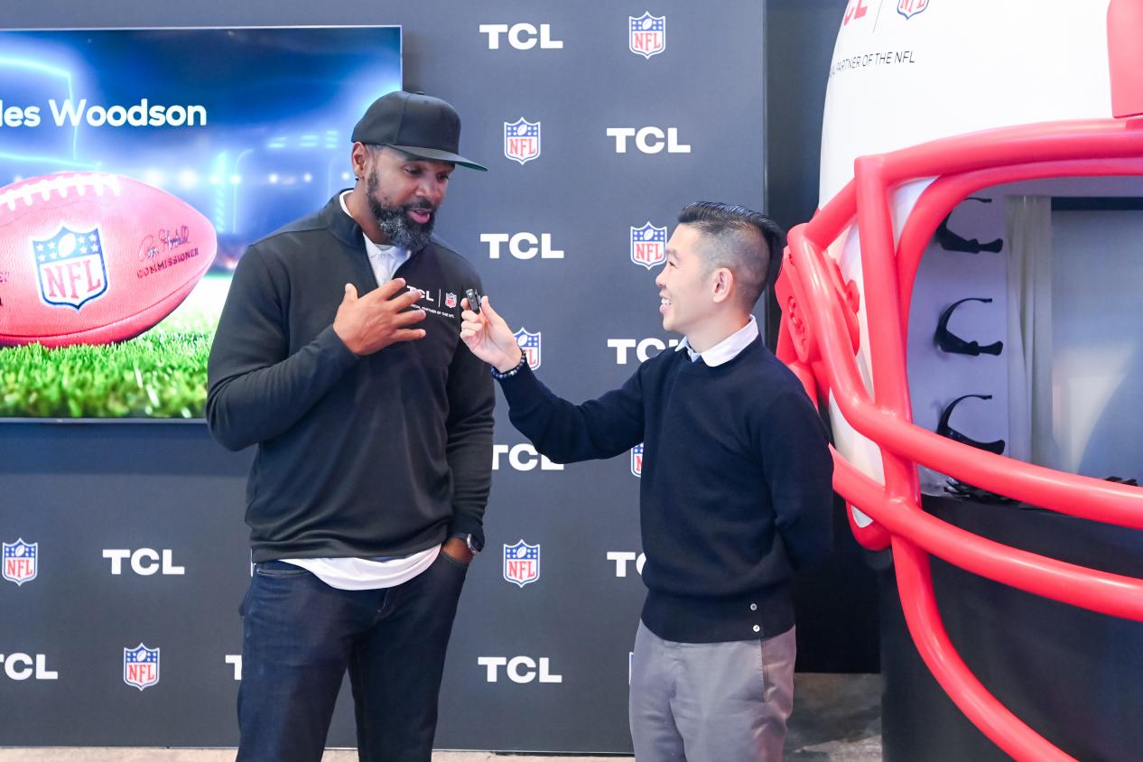 作为北美第一体育IP——NFL职业橄榄球大联盟的官方合作伙伴,TCL在本次展会现场设置了NFL专属互动区,集中呈现双方的深度品牌合作。通过超大屏电视产品,TCL为北美观众带来了革新性的NFL观赛体验。本次展会TCL更邀请了CharlesWoodson、JeromeBettis等NFL名人堂球星惊喜登场,点燃了体育与科技相融的激情。