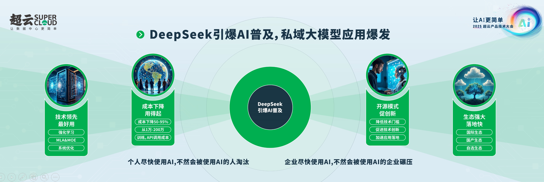 "DeepSeek带来的不仅是成本下降,更是认知革命。"超云产品部副总经理任世杰指出,"就像当年PC取代大型机,现在每个企业都需要自己的'智能大脑'"。