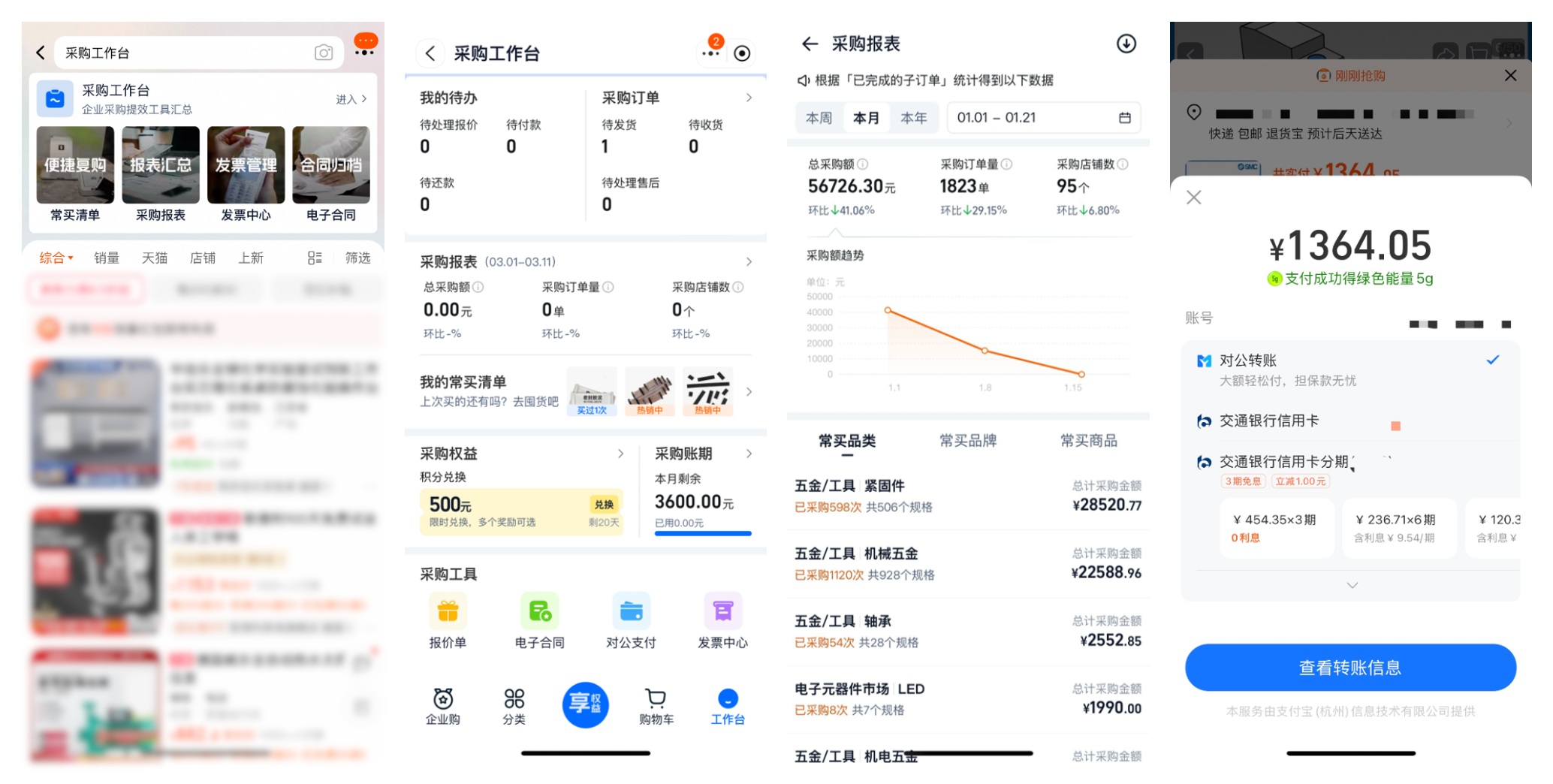 3月25日,淘宝企业购正式上线“采购工作台”,开放AI寻源助手、整单报价、采购报表、对公支付、电子合同、先采后付等8大功能,用产品的方式去解决中小企业采购“售前寻源难、售中流程繁、售后保障弱”的三大核心痛点。