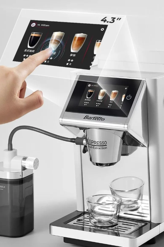 除了对技术创新的执着追求,Barsetto百胜图对于用户操作体验同样高度关注。新品LX系列全自动咖啡机紧跟时代潮流,配备了4.3吋全彩高清TFT触控彩屏,为用户带来了前所未有的智能交互体验。彩屏高清细腻,界面设计简洁直观,各种操作选项一目了然。只需轻轻触摸屏幕,即可轻松完成从选择饮品到调整参数的一系列操作,新手也能迅速上手,轻松驾驭。
