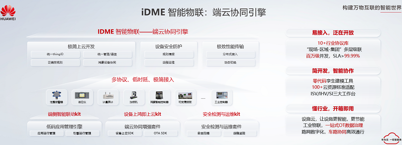 通过端云协同引擎,支持IoT端侧设备数据接入,并通过iDME.LinkX-F进行抽取和快速整合,实现OT/IT数据融合与连接、驱动工艺优化、预测性维护等智能应用。