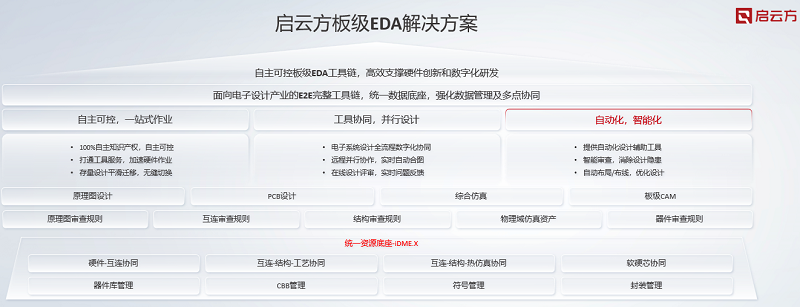 深圳启云方科技有限公司EDA产品总监盛文鹏发表了题为“板级EDA工具链智能探索与思考”的主题演讲。盛文鹏在演讲中指出:启云方基于华为工业智能平台iDME.X打造板级EDA工具链,基于iDME.X元模型驱动、专业工业数据管理、自动生成数据服务API等能力,打通电路板设计数据流,同时支持上层“点工具”灵活插拔、互联互通,涵盖原理图设计、版图设计、PCB综合仿真、电子装联CAM等关键环节,强化数据管理与多点协同能力。