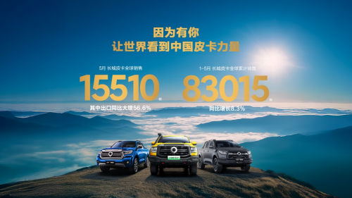日前,长城皮卡公布5月销量数据,长城皮卡5月全球销售15510辆。1-5月,长城皮卡全球累计销售83015辆,同比增长8.3%。国内终端市占率近50%,中国每卖出两台皮卡,就有一台是长城。1-5月,海外累计销售24911辆,同比增长29.5%,其中5月销售6010辆,同比大增56.6%。