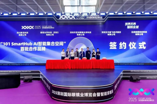 同期,大会举行“101SmartHub”首批合作品牌签约仪式。深圳市亚洲眼镜、雅视光学科技、深圳云天励飞、四川影目科技、北京蜂巢世纪等5家企业代表登台签约,标志产业协同迈入实质阶段。