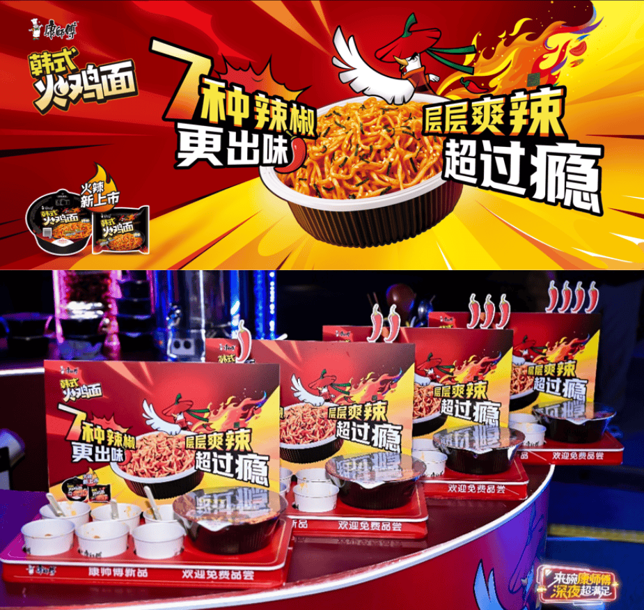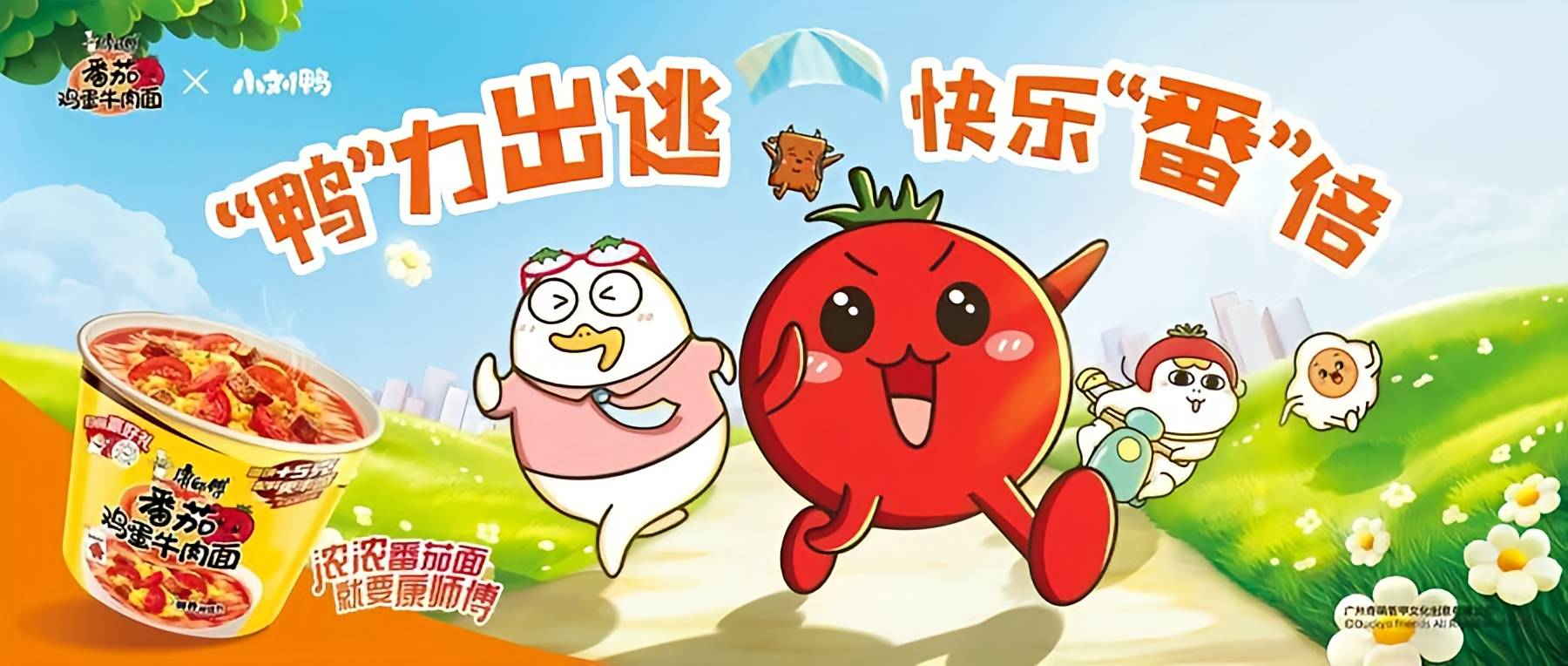 在情绪价值上,“番茄鸡蛋牛肉面”通过与热门IP“小刘鸭”联名推出“鸭力出逃”主题产品,为产品注入趣味性和新鲜感,带动番茄鸡蛋牛肉面销量增长;“香爆脆”干脆面则持续联动著名IP“宝可梦”,通过共创包装及周边产品,深度触达学生群体;火鸡面通过国人食辣趋势切入,通过7种辣椒精研的巅峰口感,与同类商品拉开差距。另外,康师傅还把“深夜面馆”开到各地,在深夜时分用一碗热面接住打工人的疲惫,体现品牌的温暖陪伴感等等。