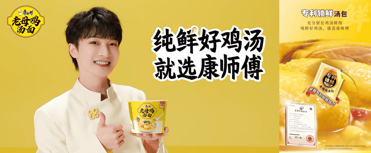 其中,光技术创新上,康师傅目前手握600多项专利技术,并逐一将这些技术应用到方便面的生产工艺上,最终推动产品的创新升级。比如,康师傅是首个将航天专利应用到方便面生产中的企业,航天专利温控技术,是康师傅与中国航天八年合作的成果之一。这让康师傅的面在天南地北都能保持一样的口感,稳住品质核心。再比如将FD冻干技术和RP技术则应用在料包上,前者用于蔬菜包脱水、锁住营养,后者为肉包锁鲜,开启了方便面的品质革命。