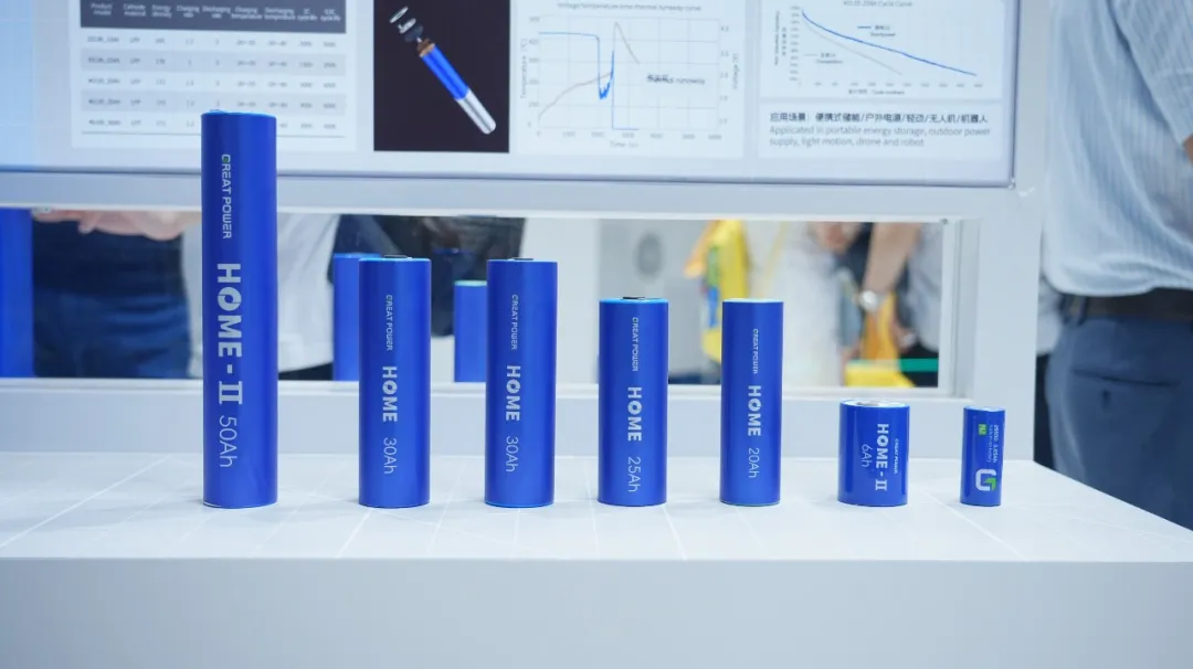 同时,鹏辉大圆柱HOME系列也是展会现场的热门产品。大圆柱电池HOME系列,历经六年技术深耕,集成超30项专利突破,在“高安全、高功率、长循环”三大核心性能上已构筑强悍的产品竞争力。目前HOME系列产品出货量接近一亿颗,广泛应用于户用储能、便携式储能、轻动等场景,成为了户用储能、便携式储能等领域的热门选择。