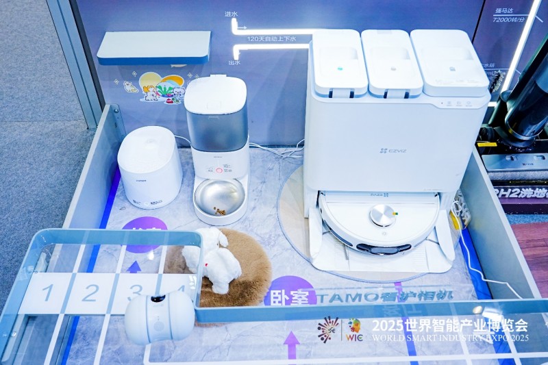 智博会现场,针对宠物看护细分场景推出的可移动摄像机TAMO备受关注。它支持远程看护逗宠及全屋移动,满足养宠用户对爱宠的实时监控、看护和双向互动的需求,实现在线云养宠。在智能化方面,TAMO搭载了多种AI算法,可以实现宠物智能识别、一键找宠、宠物跟随等功能,还支持双向语音通话、宠物变声对讲、激光逗宠等互动功能,增添与爱宠互动的趣味性。