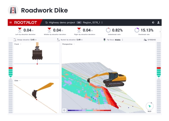 另外,在数字孪生技术落地方向也是排名全球前三。ROOTPILOT3D机器控制系统借“智能眼镜”技术革新挖掘机操作,能实时完成高精度土方作业任务,增强操作员空间感知,实现精准高效挖掘,已在市政工程、高速工程、疏浚工程、沟渠工程等领域成功应用。