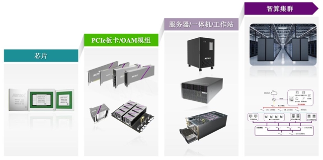 公司自主研发的“曦云”C系列训推一体GPU芯片基于全自研GPUIP、指令集和架构,在通用性、单卡性能、集群稳定性及生态兼容性上达到国内领先水平。旗舰产品曦云C500系列已实现规模化应用,在部分客户测试中性能超越英伟达A100,成为国内首个对标国际顶尖水平的国产训推一体芯片。新一代C600芯片已于2025年7月发布,采用全国产供应链闭环,支持FP8多精度混合算力,预计年底进入风险量产;C700旗舰芯片已完成核心设计验证,计划2027年量产,性能指标直指英伟达H100,构建起覆盖训练、推理、渲染的全场景产品矩阵。