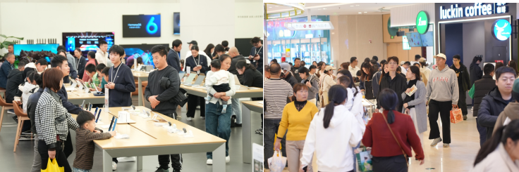 在业态焕新方面,广场近期引入超10家新店,覆盖智能科技、潮流零售、亲子娱乐与特色餐饮等多重消费场景:B1层“舌尖快闪组”迎来“超享乐”剁椒面、“杨激动”黑烙擀面皮、“肉的N次方”等网红餐饮,以地域美食引爆味蕾;1F“品质生活组”汇聚石头科技智能家电、成生生定制服饰、罗莱家纺等品牌,全面提升居家与时尚品质;3F至4F则设有李宁儿童店与“抓小鱼”游乐空间,组成“亲子休闲组”,满足家庭客群的购物与娱乐需求;5F“吃货雷达组”新增顺德平靓鲜粥底火锅、昌丰破浪椒麻鲜锅,以热辣暖食呼应冬季主题。