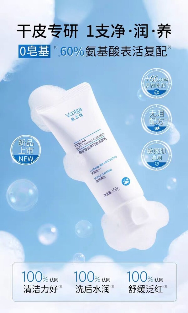 云朵清洁系列云柔轻澈洁面乳专为破解干敏肌"想清洁又怕伤屏障"的难题。其核心采用8重表活科学复配体系——以温和氨基酸表活为基底,复配天然表活茶籽提取物,搭配4重保湿因子(AQUAXYL™、透明质酸钠等)和2重舒缓因子(悦肤宁、龙胆双因子抗敏素),构建"清洁-保湿-舒缓"三重洗护体验。通过温和有效的清洁与保湿舒缓因子的协同,真正实现"边洗边养",令肌肤洗后水润不紧绷,成为干敏肌和换季敏感期清洁的"安心之选"。