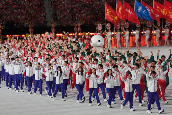开幕式上,十五运会东道主粤港澳三支代表团共同亮相,展现了大湾区携手同心、共襄体育盛会的风采。当来自粤港澳三地的三位火炬手身着安踏专业装备点燃主火炬,象征团结与奋进的火焰照亮夜空,标志着十五运会正式拉开帷幕。