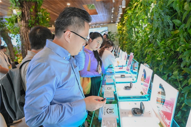 当天,调研团走进冠旭电子产品体验区,沉浸式感受标准化与技术创新的融合成果。在CleerARC5音弧开放式AI耳机展示台前,调研团成员纷纷体验其搭载的6纳米6核带AI引擎神经网络处理器带来的强大AI功能,对“AI声境恒听”“实时同声传译”等创新功能赞不绝口。冠旭电子相关负责人介绍,该产品严格遵循162项国际化标准研发生产,从声学性能到智能算法均达到行业领先水平。据介绍,凭借对声音美学的深刻理解和产品的持续创新,Cleer荣获美国GoodDesign奖、CES创新大奖、中国当代好设计奖、德国红点设计奖及IF设计奖等100多项国际创新创意大奖,获得超3200项专利证书。