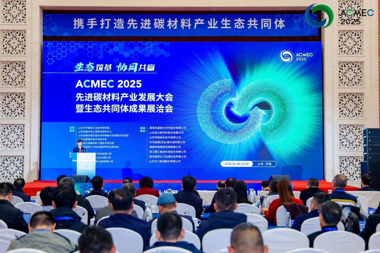 2025年11月19日,由山东大学威海工业技术研究院、山东省碳纤维工程技术研究中心、山东省碳纤维及复合材料制备与应用重点实验室、山东省先进碳材料工程技术研究院、威海市复合材料学会、山东省航空产业协会新材料专业委员会主办的“2025‘ACMEC先进碳材料产业发展大会暨生态共同体展洽会”在济南南郊宾馆隆重举行。