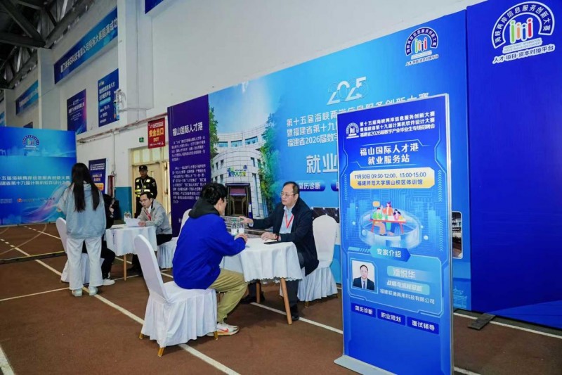 决赛现场同期举办的福建省2026届数字产业毕业生专场招聘会吸引了100余家企业参会,提供2800余个就业岗位,联合福山国际人才港,为参赛选手提供简历诊断、就业指导、职业生涯规划一站式服务,助力青年人才就业,现场达成就业意向160余人。