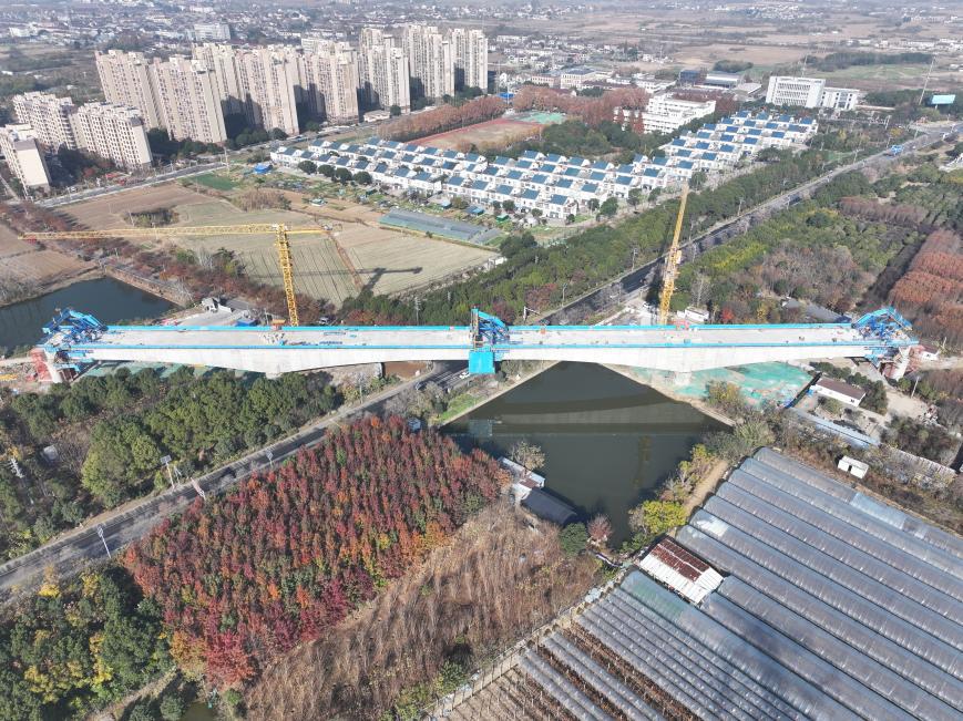 11月30日,由中铁四局南京分公司承建的宁(南京)淮(安)城际铁路跨规划路G235(68+128+68米)连续梁顺利合龙,为后续连续梁拱肋施工奠定了坚实基础。