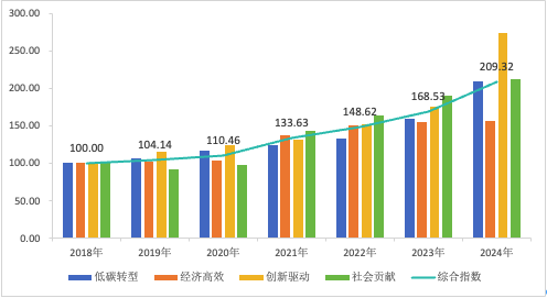 指数结果显示,2024年,内蒙古现代能源经济发展指数增长至209.32点,同比增速达24.21%,发展质速较前期进一步提升,年均复合增速达13.10%,其中,低碳转型、创新驱动和社会贡献三项指标较基期均已实现翻倍增长,现代能源经济的高速发展为内蒙古区域经济发展格局注入了巨大动能。从“挖煤卖煤”到“追风逐日”,从“能源基地”到“绿能高地”,内蒙古走出了一条独具特色的能源革命之路。