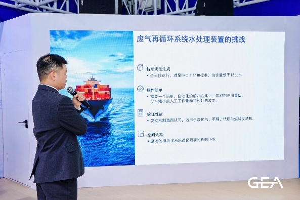 这一承诺,转化为覆盖船舶运营关键环节的坚实解决方案。GEA大中华区分离与流体技术事业群负责人于凯健在展台现场具体阐述道:“GEA为船舶行业构建了覆盖燃油与润滑油净化、燃油增压与供油系统、油水分离、EGR洗涤水净化处理及余热回收等关键环节的全价值链解决方案,致力于助力船东实现性能、盈利和可持续发展的三重提升。”