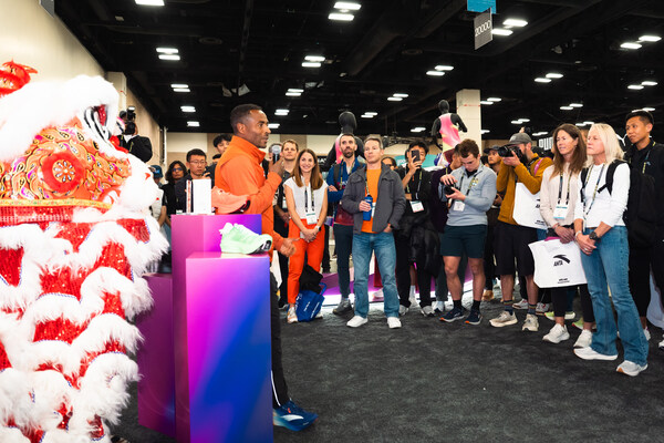 12月3日在TRE安踏展会现场,安踏品牌CEO徐阳先生及安踏跑步代言人贝克勒先生到场,共同面向全球参展人员举办了一场醒狮点睛仪式,用这一传统民俗向世界传递安踏作为民族品牌的身份与骄傲。
