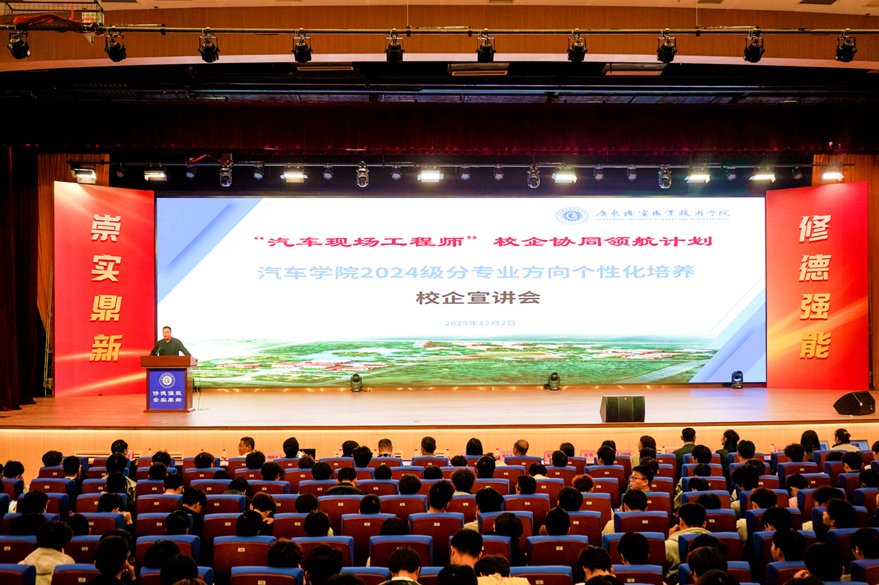 广东机电职业技术学院汽车学院负责人王广海详细解读了领航计划的整体架构与创新举措,副院长黄伟则对2024级学生分专业方向培养实施方案及志愿填报规则进行了系统说明,为学生提供清晰的发展路径。