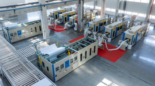 后续经喷胶复合封装、围边组合加固结构,紫外线杀菌守护产品洁净卫生,最终由自动包装区以每天2000张的效率完成收尾,全链路以数字化技术定义精度与效率,树立行业智造标杆。