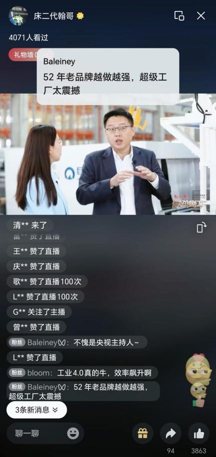 直播镜头下,智能床垫自动化生产线实现全流程协同,展现了运时通超级工厂智能制造工业4.0的硬核实力。环球时报的权威视角为企业创新见证。“床二代翰哥”的新生代视角则拉近了传统产业与年轻群体的距离,双重传播维度让“超级工厂”不再是冰冷的工业名词,而是可感知的技术进步与产业温度。
