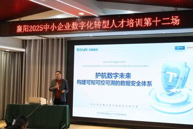 近日,由襄阳市经济和信息化局主办,枣阳市科技和经济信息化局、中国信通院“智能+学院”、信通院(武汉)科技创新中心有限公司及武汉软件工程职业学院联合承办的2025年襄阳市中小企业数字化转型人才培训(第十二场)在枣阳市圆满举行。本次培训围绕“技术赋能”与“安全筑基”两大主线,通过政策解读、本土实践、前沿技术及风险防范的全方位课程,为与会企业提供了从转型规划到稳健落地的系统指南。