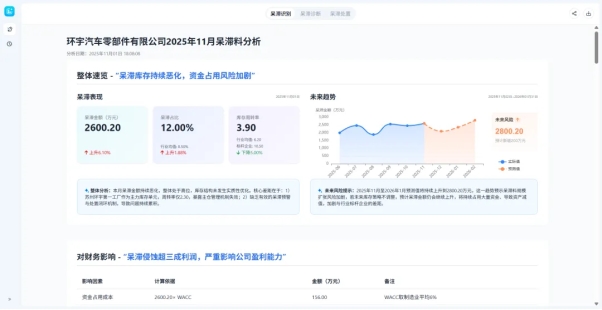 实时监测库存状态,清晰展示呆滞金额、呆滞占比及库存周转率核心数据。更从资金占用成本、减值损失、机会成本三大维度,深度剖析呆滞料对财务的影响,精准量化其对净利润的负面冲击,让库存损耗看得见、算得清。