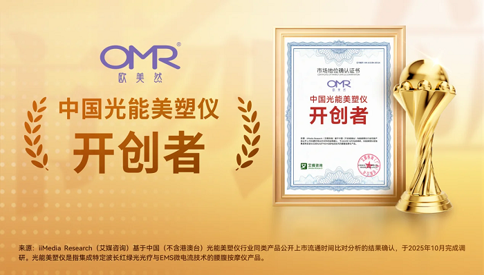 近期,OMR欧美然获全球领先的新经济产业第三方数据挖掘和分析机构iiMediaResearch(艾媒咨询)授予的“中国光能美塑仪开创者”市场地位确认。