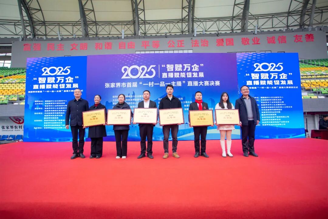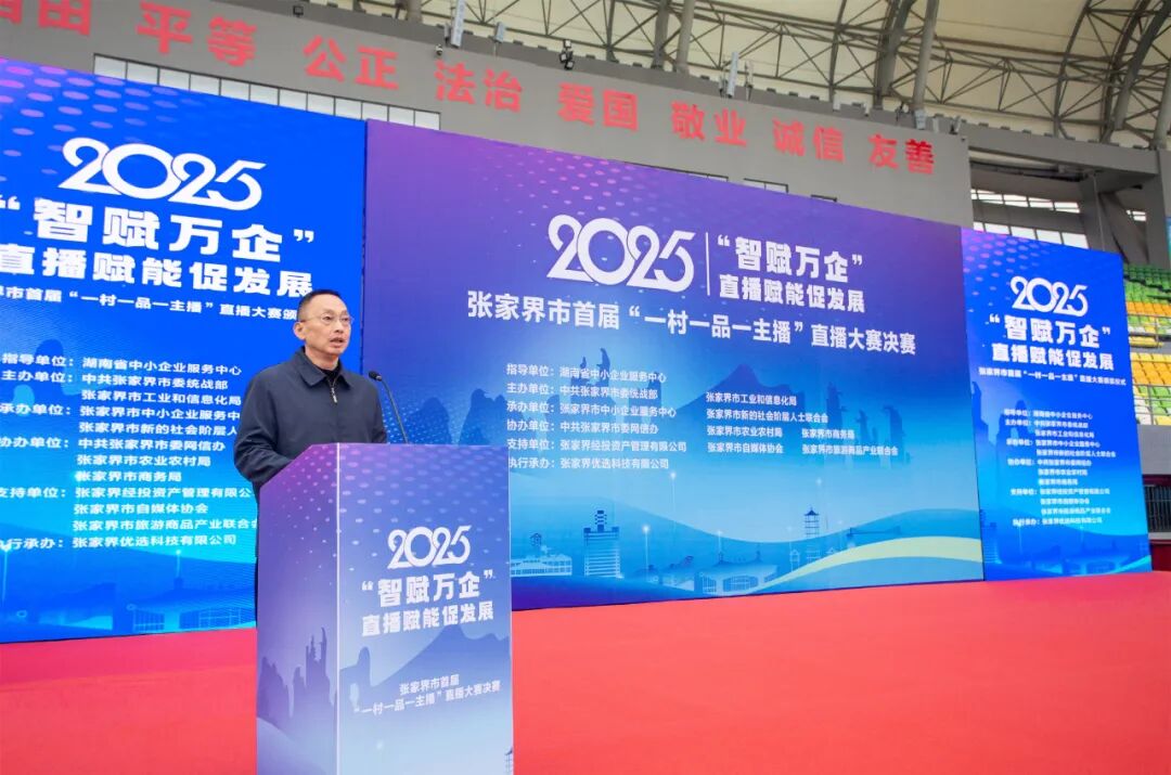 (李三清李铭航覃龙)12月15日,2025年“智赋万企”直播赋能促发展暨张家界市首届“一村一品一主播”直播大赛决赛在贺龙体育中心体育场举行。