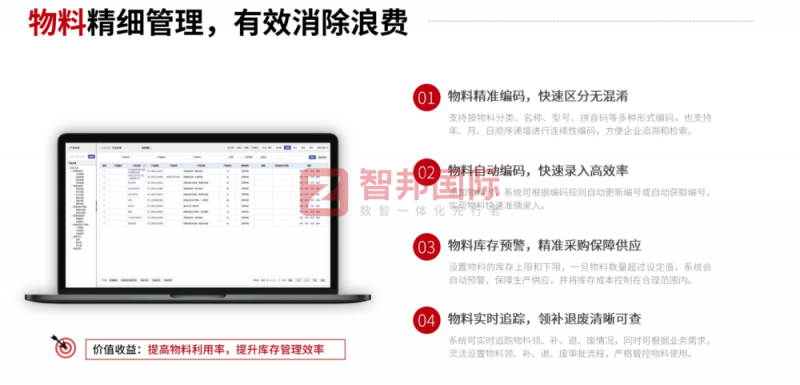 制造车间的高效运转,离不开设备、质量、库存等要素的协同联动。智邦国际MES通过设备全生命周期管理、全周期质量管理、动态库存管理三大模块,实现了生产要素的“智能交响”,让每一台设备、每一件产品、每一份物料都能在系统中“开口说话”。
