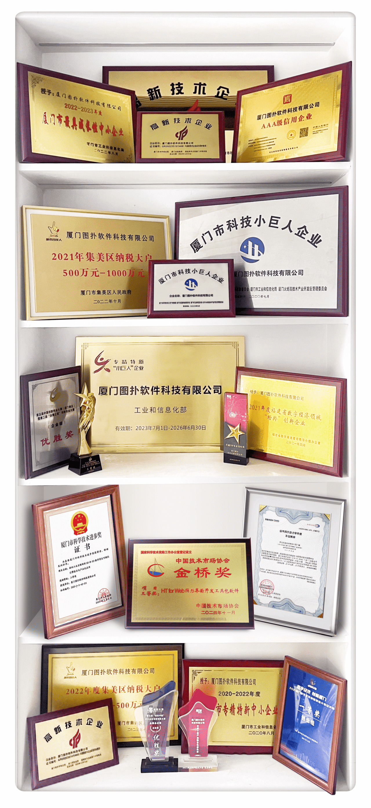 图扑软件历经十余载的持续研发沉淀,凭借自研产品HT优势,在自有领域中建立了强大的品牌影响力,用实际行动践行行业领军者的担当和使命。图扑曾先后荣获: