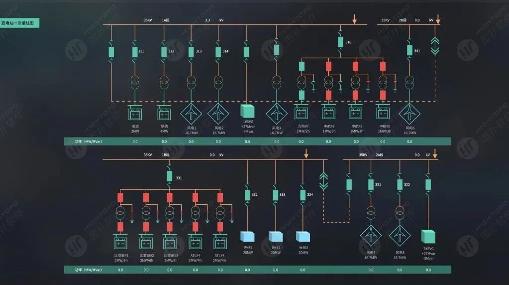 ·2D组态:精准还原配电系统回路拓扑,通过动态图标实时显示断路器开合状态、电流电压数值,支持设备参数配置弹窗,国产嵌入式环境下实现毫秒级数据刷新。